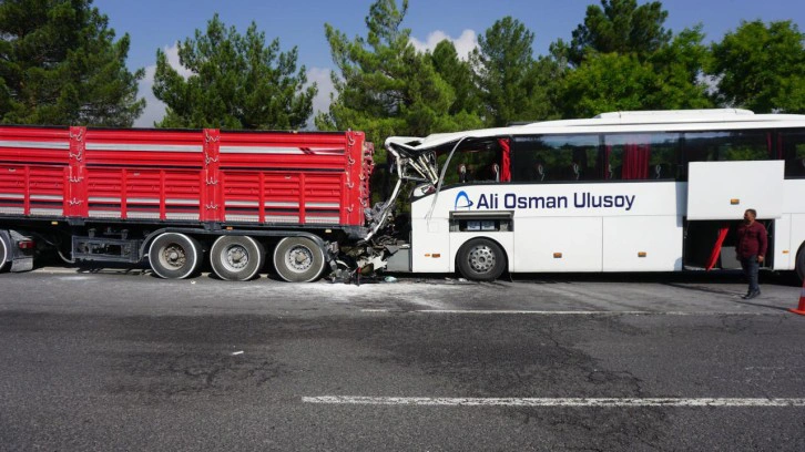 Adana'da, tıra arkadan çarpan yolcu otobüsünün sürücüsü ve muavini hayatını kaybetti, 12 yolcu yaralandı.