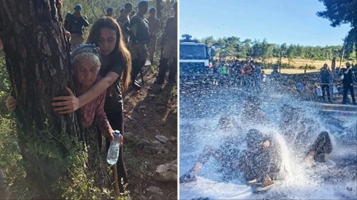 88 yaşındaki bir kadın ağaca sarılarak protestolara katıldı