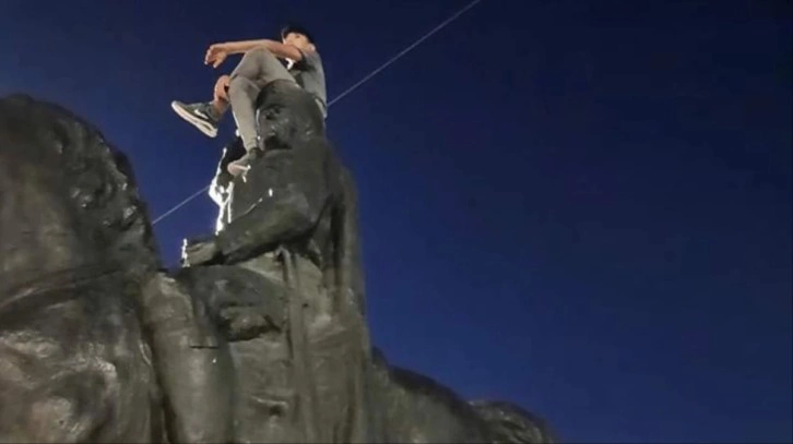 Şanlıurfa'da Atatürk heykelinin üzerine çıkan bir kişi sosyal medyada tepki toplantı. Şanlıurfa Valiliği, 13 yaşındaki Suriyeli uyruklu şahsın gözaltına alındığı açıkladı.