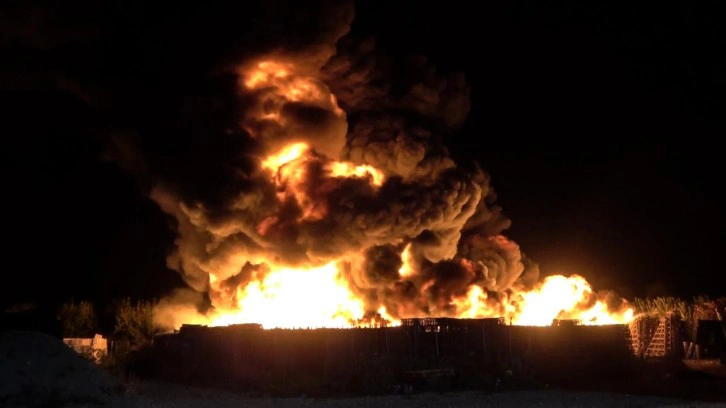 Çukurca Mahallesi'nde soğuk hava deposunun açık havadaki bölümündeki plastiklerin bulunduğu alanda yangın çıktı.