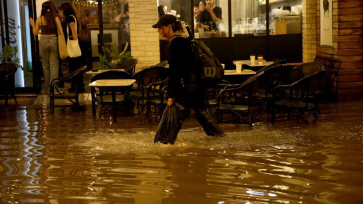 Muğla'nın Fethiye ilçesinde etkili olan sağanak, hayatı olumsuz etkiledi.