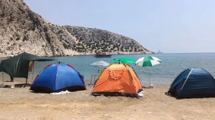 Kültür ve Tabiat Varlıklarını Koruma Kanunu kapsamında alana çadır ve karavan yerleştirilmemesi gerektiğini anlatan zabıta, ziyaretçilerden bunların kaldırılmasını istedi.