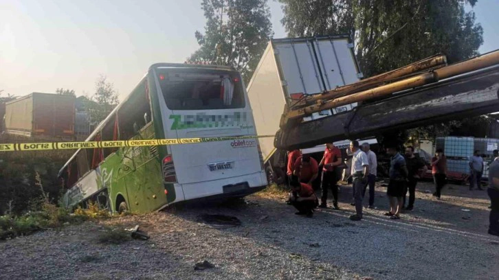 Mersin'in Tarsus ilçesinde, şehirler arası yolcu otobüsünün kamyonla çarpışması sonucu 1 kişi hayatını kaybetti, 28 kişi yaralandı.
