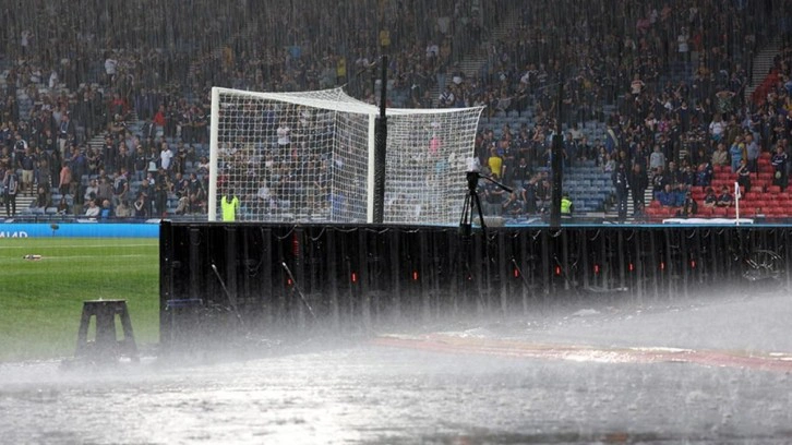 Yoğun yağmur altında oynanan maçın 10. dakikasında hakem maçı durdurdu ve olumsuz hava koşulları nedeniyle oyuncuları soyunma odasına gönderdi.