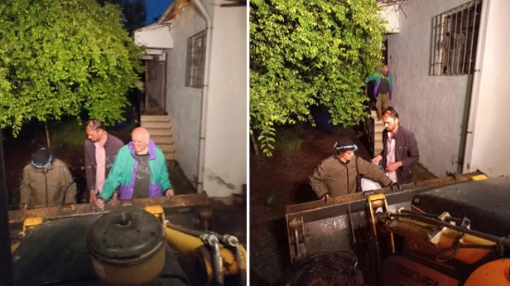 Mezraya ulaşan ekipler, mahsur kalan kişileri iş makinesi yardımıyla kurtarıldı.