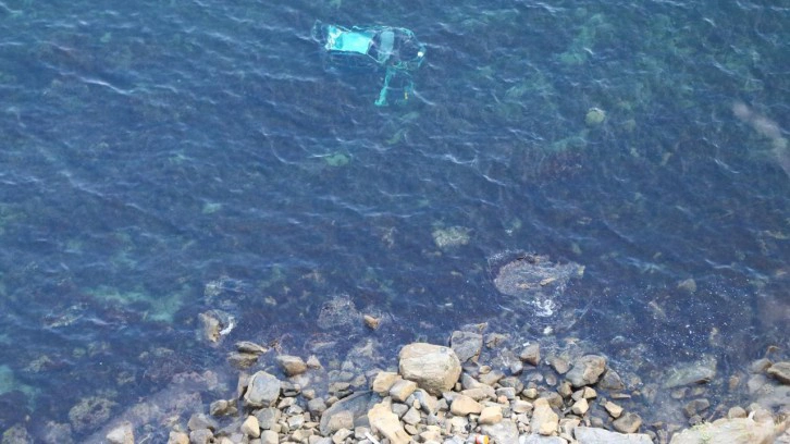 Tekirdağ'da sürücüsünün el frenini çekmeyi unuttuğu otomobil 150 metrelik uçurumdan denize düştü.